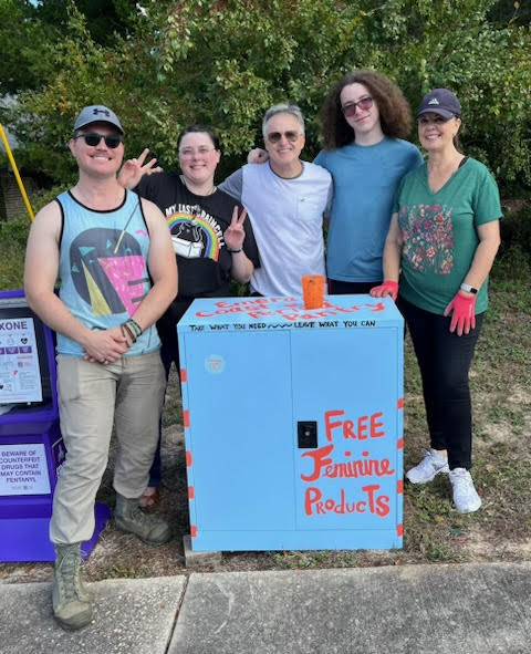 We have a period pantry!! Check it out on John Sims Blvd. In collaboration with the Emerald Coast Period Pantry, our pantry offers free menstrual supplies.